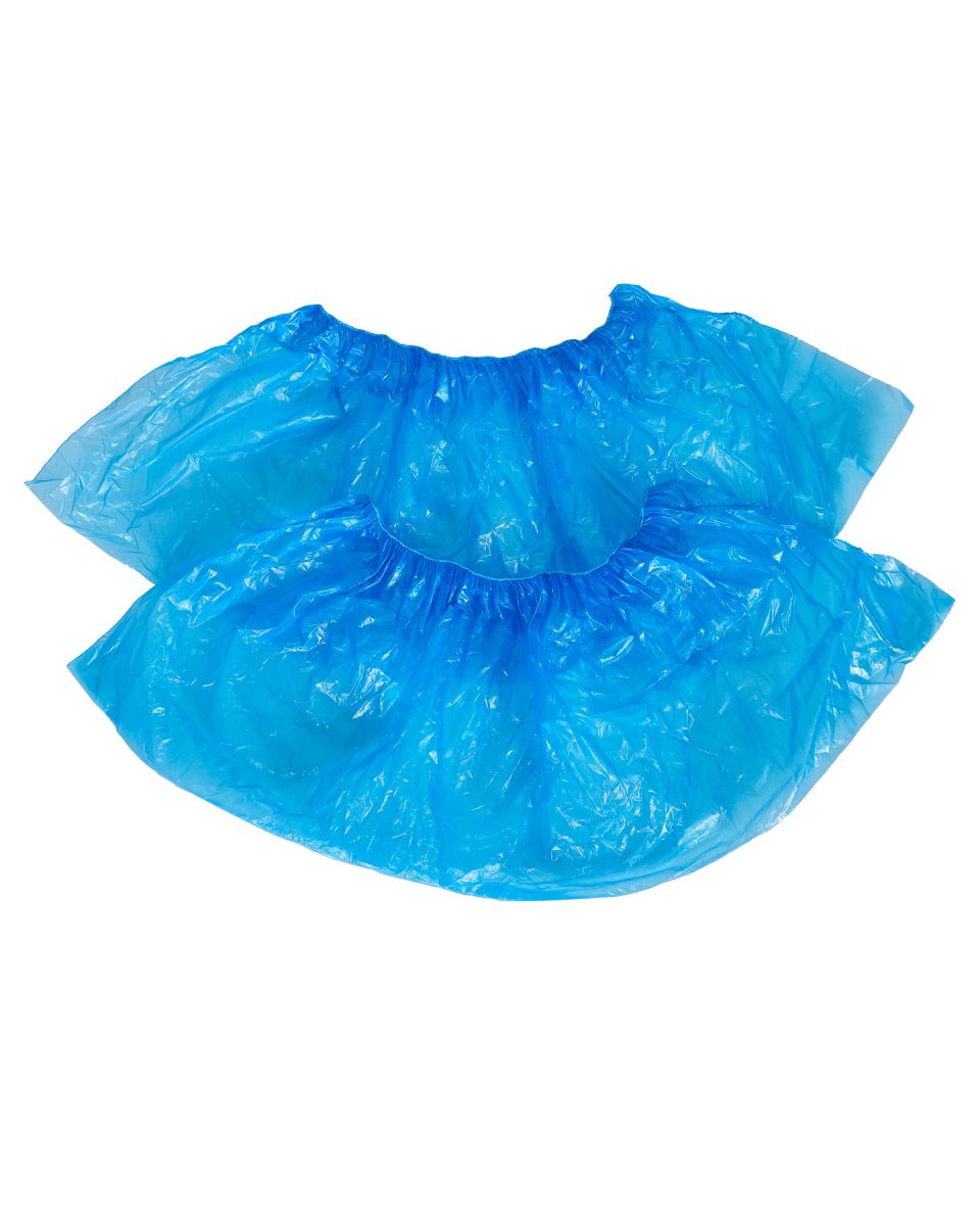Синие одноразовые бахилы с одинарной резинкой, однослойные. Выполнены из полиэтилена низкого давления (первичное сырье). Применяются в гигиенических целях для сохранения чистоты помещений от уличной грязи.