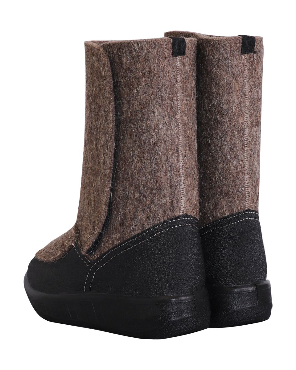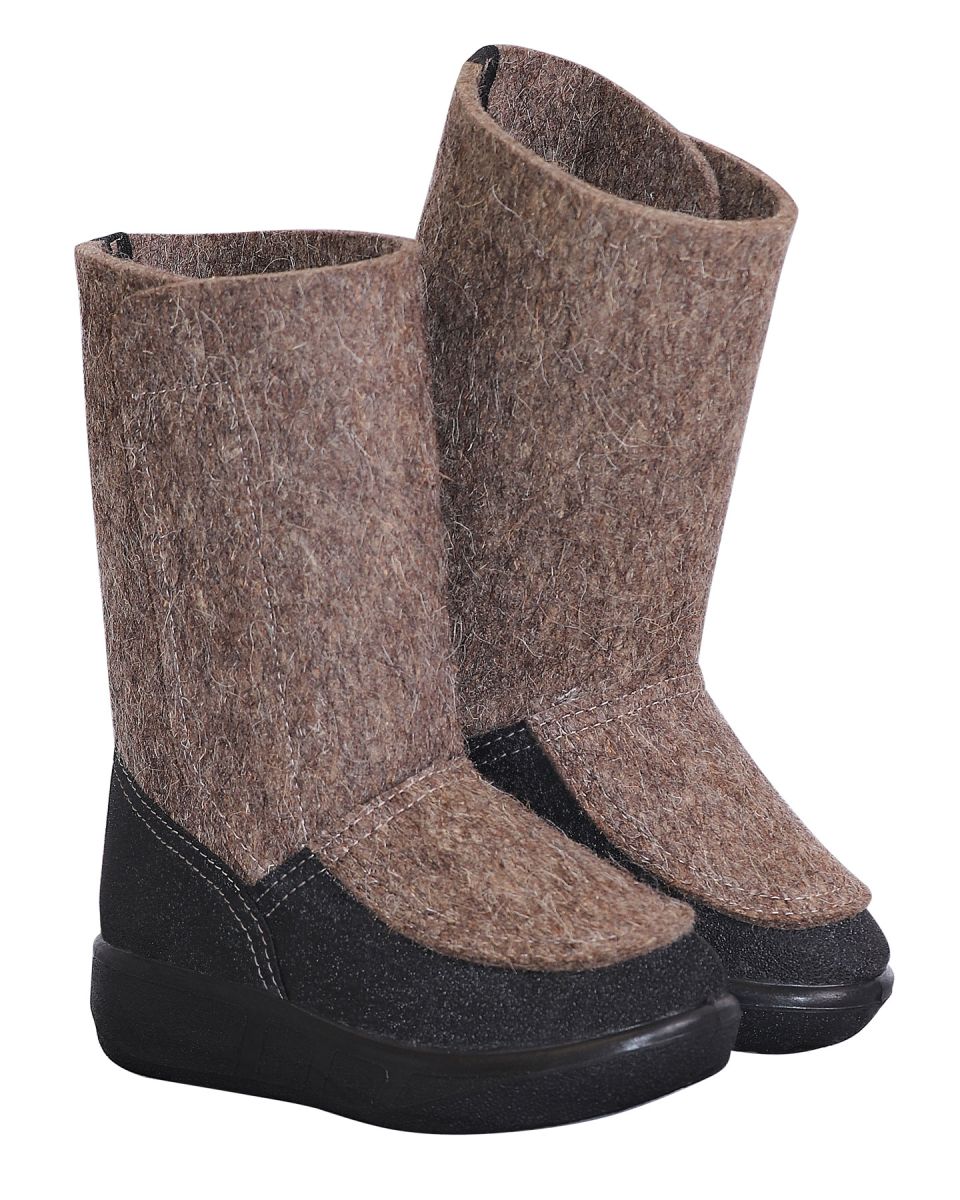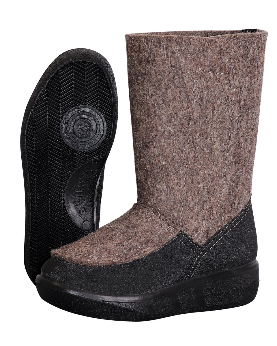 Серо-кофейный цвет делает изделия практичными. На них не будут видны следы от пыли и жира. Уход за валенками предельно прост: достаточно чистить их жесткой щеткой.